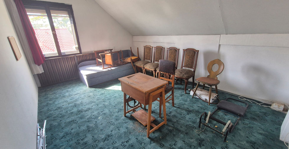 A tetőtérben kialakítottak 3 jó méretű hálószobát, fürdőszobát WC-vel, plusz kialakítható egy gardrób helyiség.